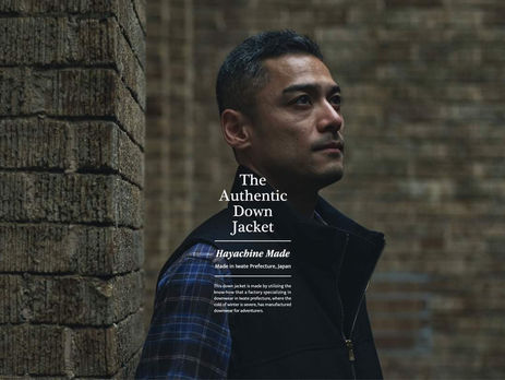 岩手県宮古市にあるダウンウェア専門工場「有限会社 クラスター」のオリジナルブランド『Hayachine Made』の「The Authentic Down Jacket」 イメージモデルをつとめています